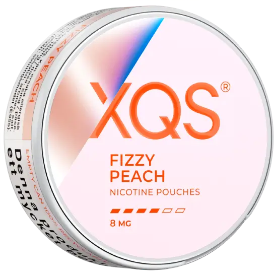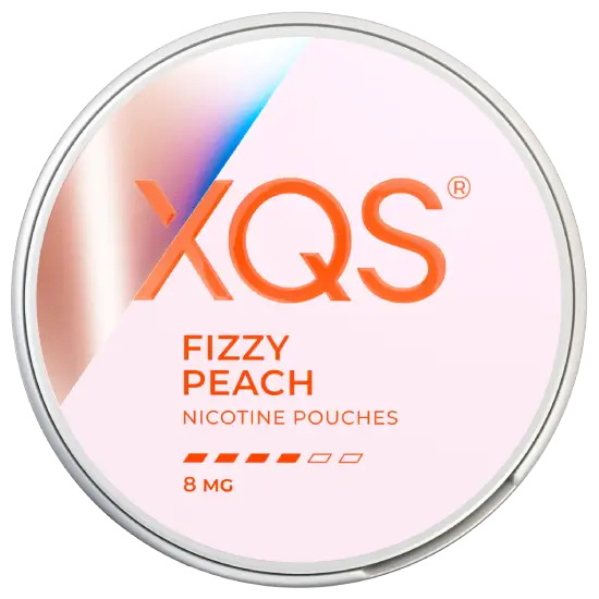 XQS Fizzy Peach 8mg Nicotine Pouches – Strong, slim, tobacco-free pouches with sparkling peach flavour. Fruity, refreshing, and bold with 8 mg nicotine.